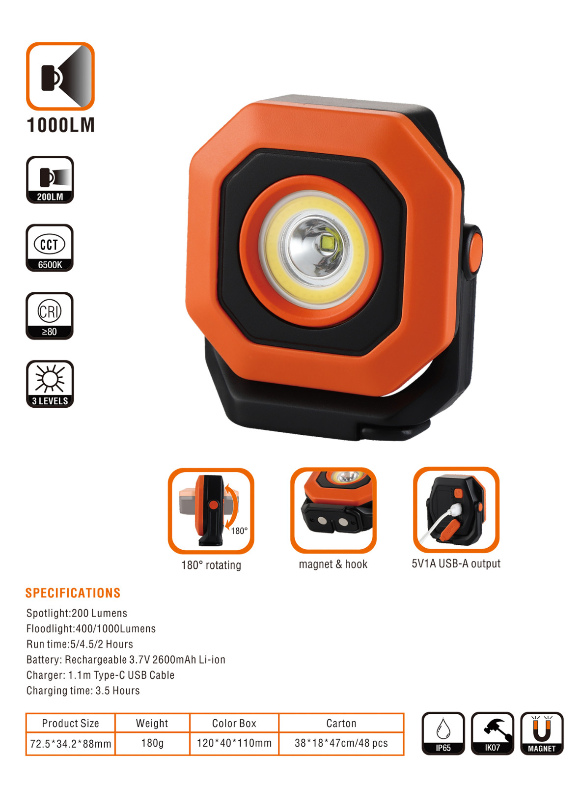 LED RECHARGEABLE WORK LIGHT
